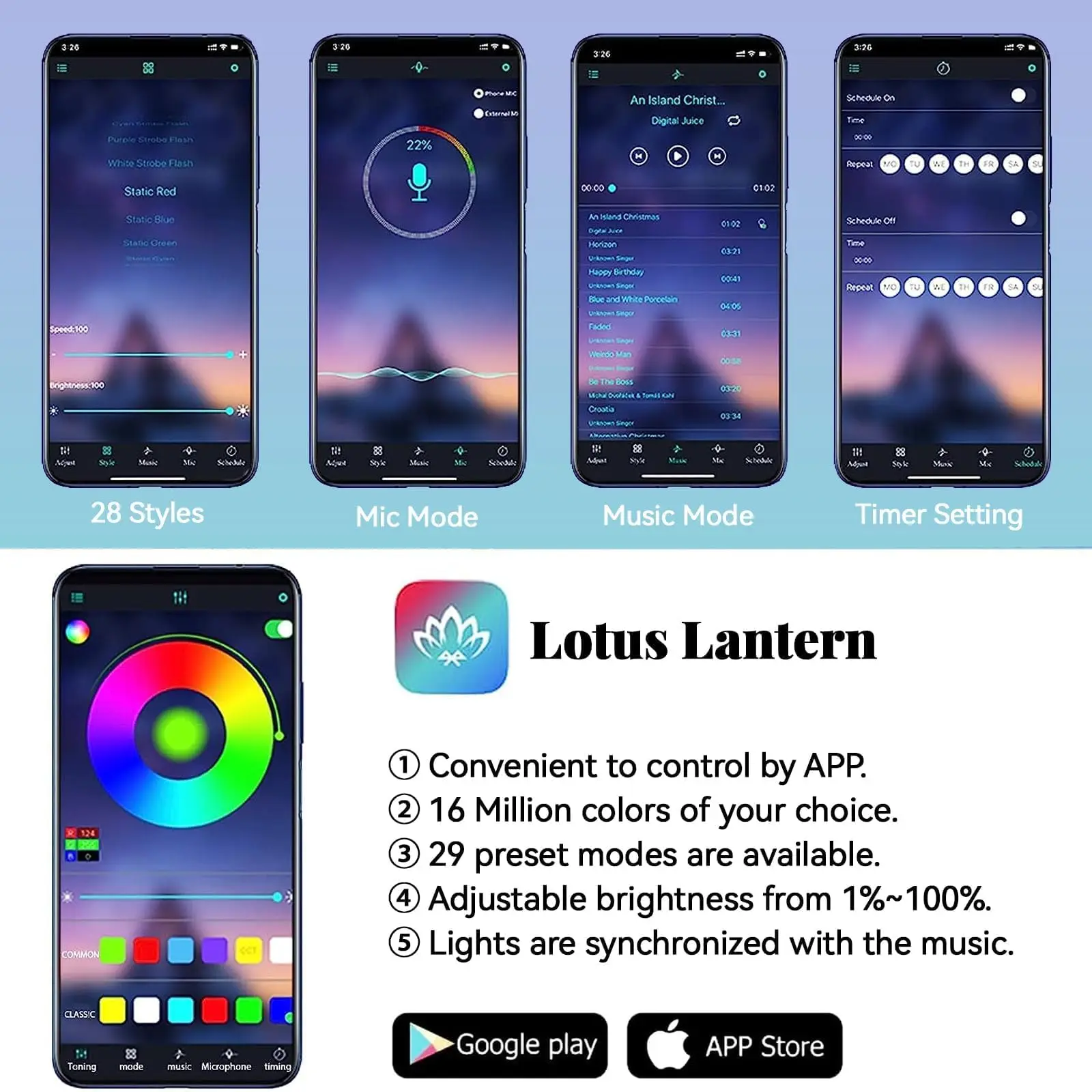 Bluetooth connection phone APP control. With memory chip